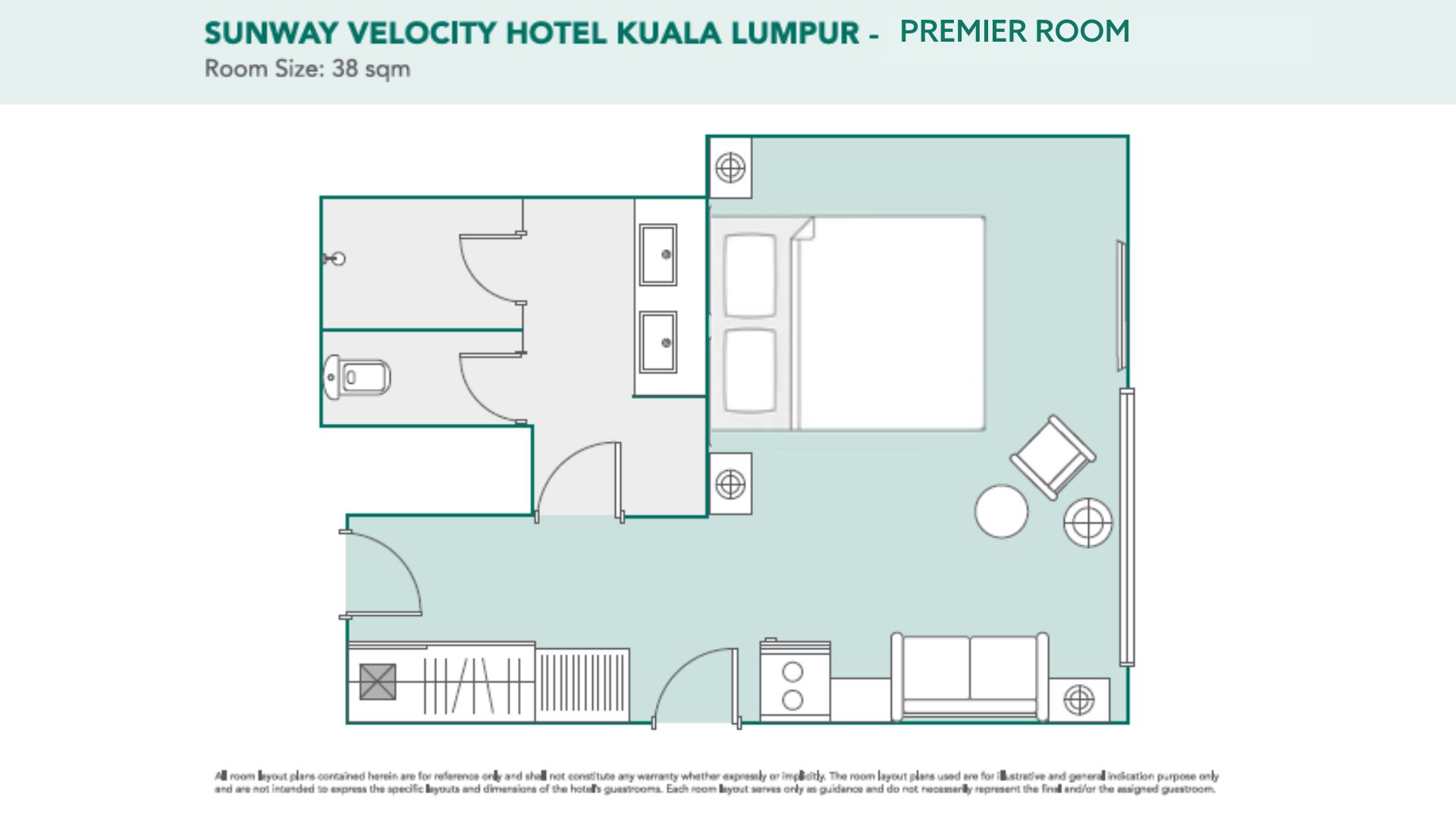 Located at the end of each guest floor for privacy. Besides large floor-to-ceiling windows, our 38sqm Premier Rooms feature amenities such as an LED Smart TV, a 2-seater sofa with coffee table, an Espresso Capsule Coffee Machine, a mini refrigerator, welcome refreshments, and personalized toiletries set. En-suite bathroom with double sink vanity counter, hair dryer, a separate walk-in shower, and water closet, providing a perfect blend of convenience and comfort for your stay.