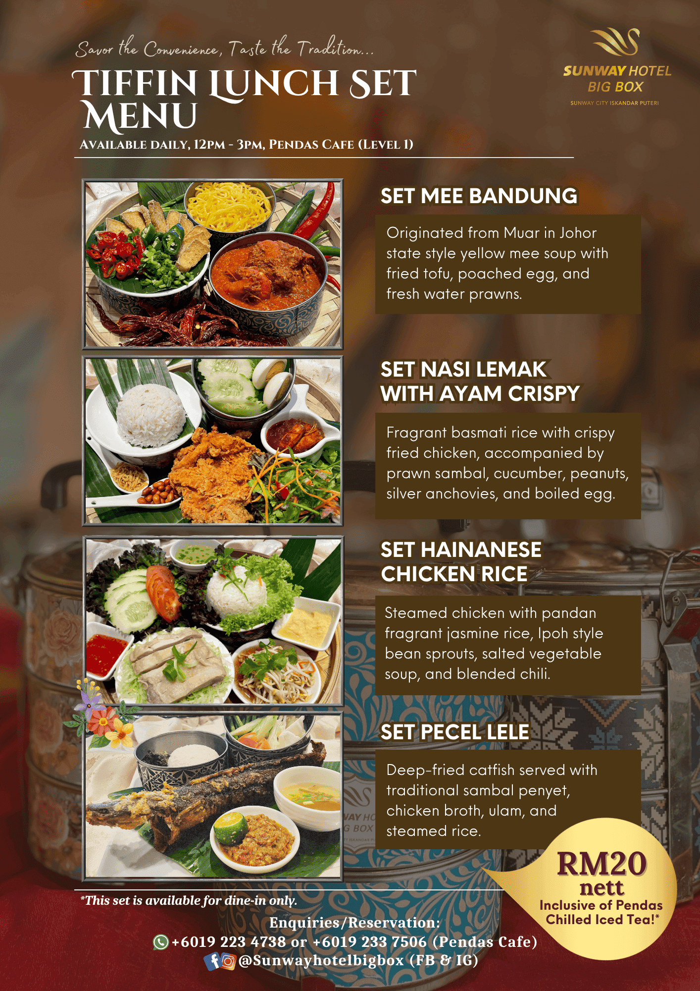 Enjoy our authentic Tiffin Lunch Set at Pendas Cafe starting from RM20nett per person.